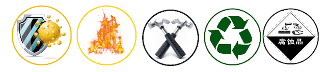 Probado según la norma ASTM D256-10el, resiste impactos de sillas de ruedas y carritos. Certificado según la norma ASTM D543-14, resiste la corrosión causada por ácidos, álcalis y desinfectantes a base de alcohol, ideal para